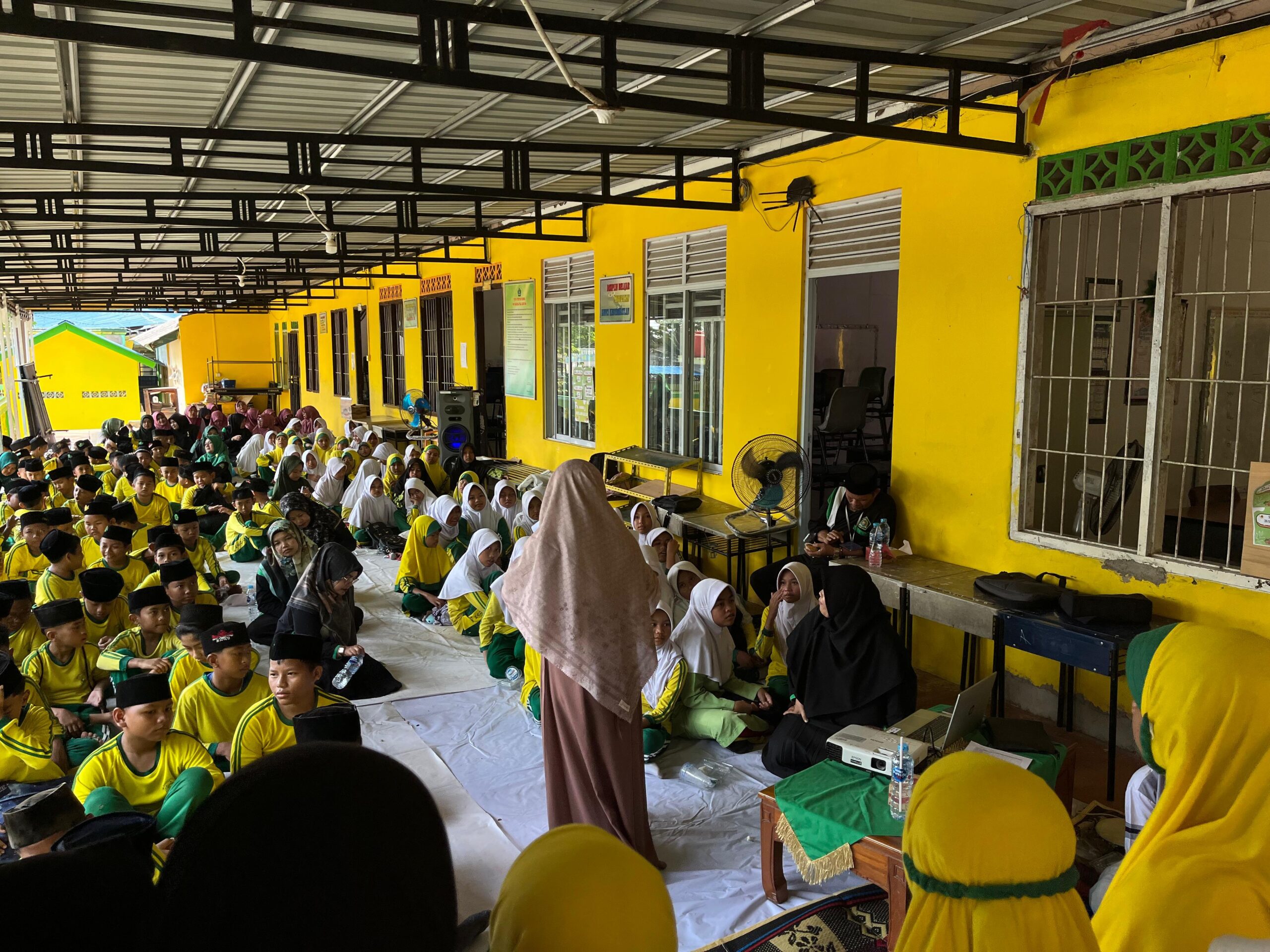 Tampak suasana keseluruhan kegiatan Edukasi Pendidikan Digital di Teras MI Raudlatul Qur’an Batam yang diikuti oleh siswa, guru, dan tenaga pendidik. Kegiatan ini menjadi bagian dari upaya sekolah dalam menciptakan Safe Zone digital bagi peserta didik.