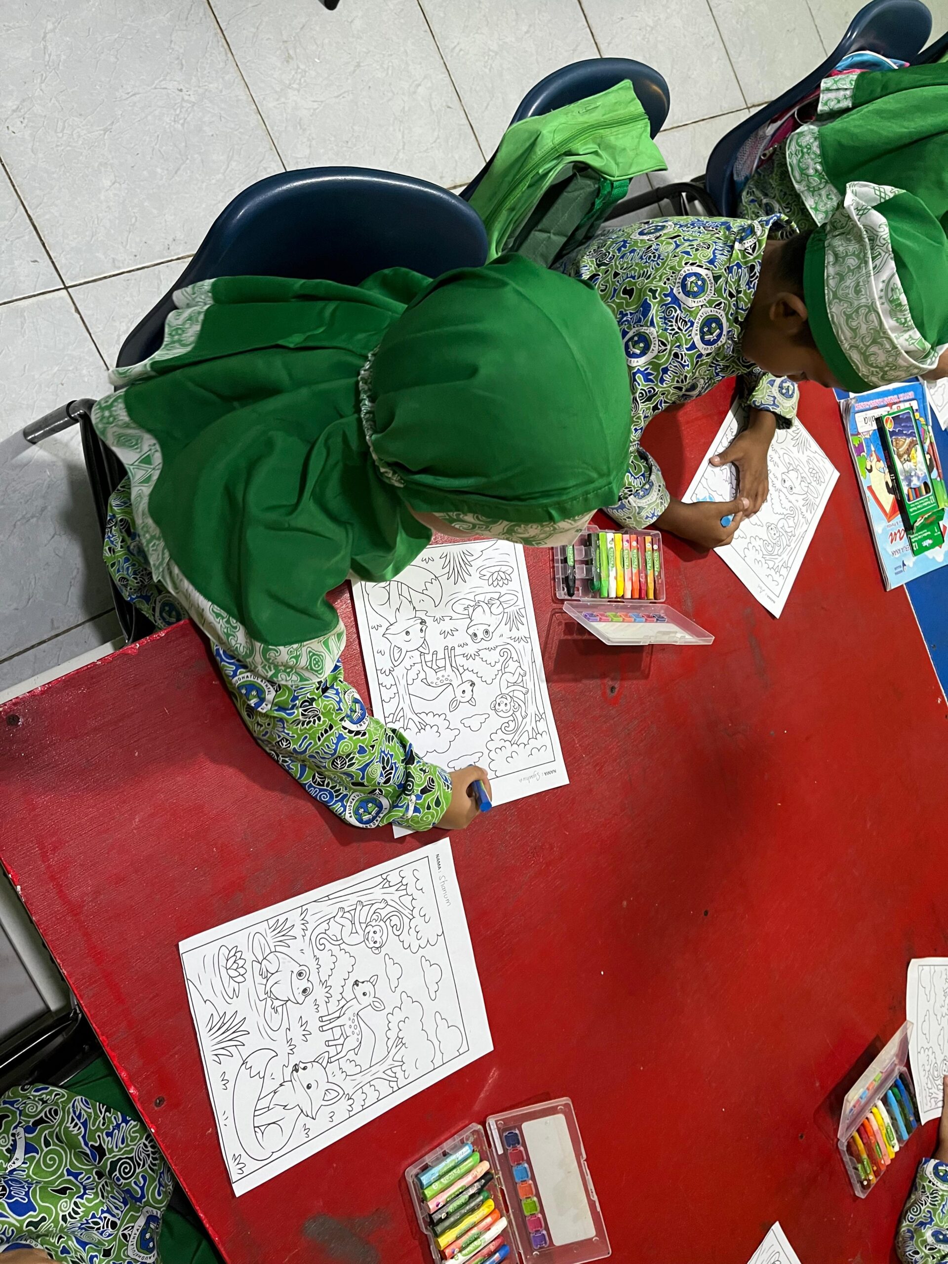 Siswa RA Raudlatul Qur’an 01 Batam tampak fokus dan ceria saat kegiatan mewarnai bersama, sebagai bentuk bermain kreatif yang melatih motorik halus dan imajinasi anak.Bermain merupakan bagian yang tidak terpisahkan dari dunia anak. Dalam Islam, bermain bukanlah sesuatu yang sia-sia, melainkan kebutuhan fitrah anak yang harus dipenuhi agar tumbuh kembangnya berjalan secara seimbang, baik secara fisik, emosional, maupun spiritual.