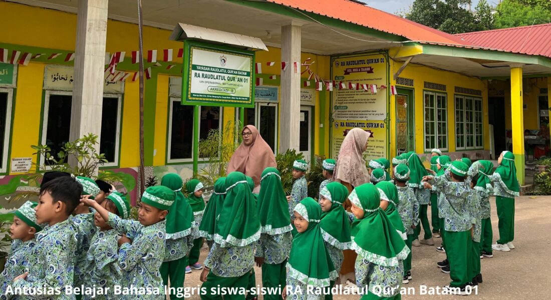 Peserta didik RA Raudlatul Qur’an Batam 01 mengikuti kegiatan pembelajaran Bahasa Inggris dengan penuh semangat. Dalam kegiatan ini, anak-anak dikenalkan dengan kosakata dasar sehari-hari melalui metode belajar yang menyenangkan dan interaktif.