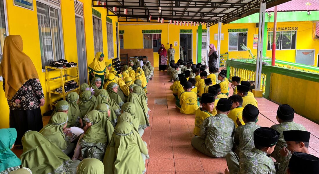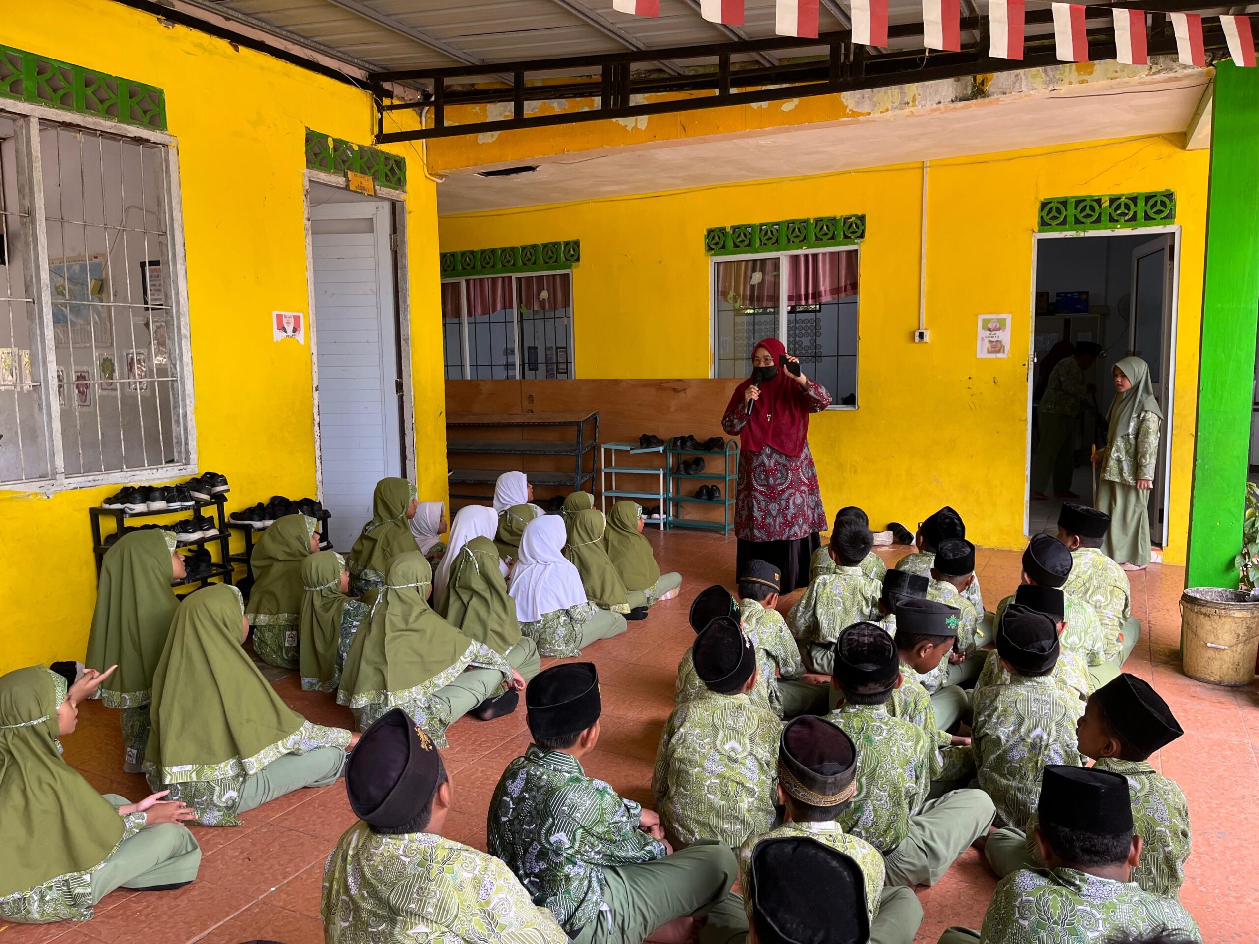 Dalam suasana yang penuh semangat, para siswa MI Raudlatul Qur’an Batam mengikuti kegiatan pemberian kosakata Bahasa Inggris yang dipandu langsung oleh para guru.