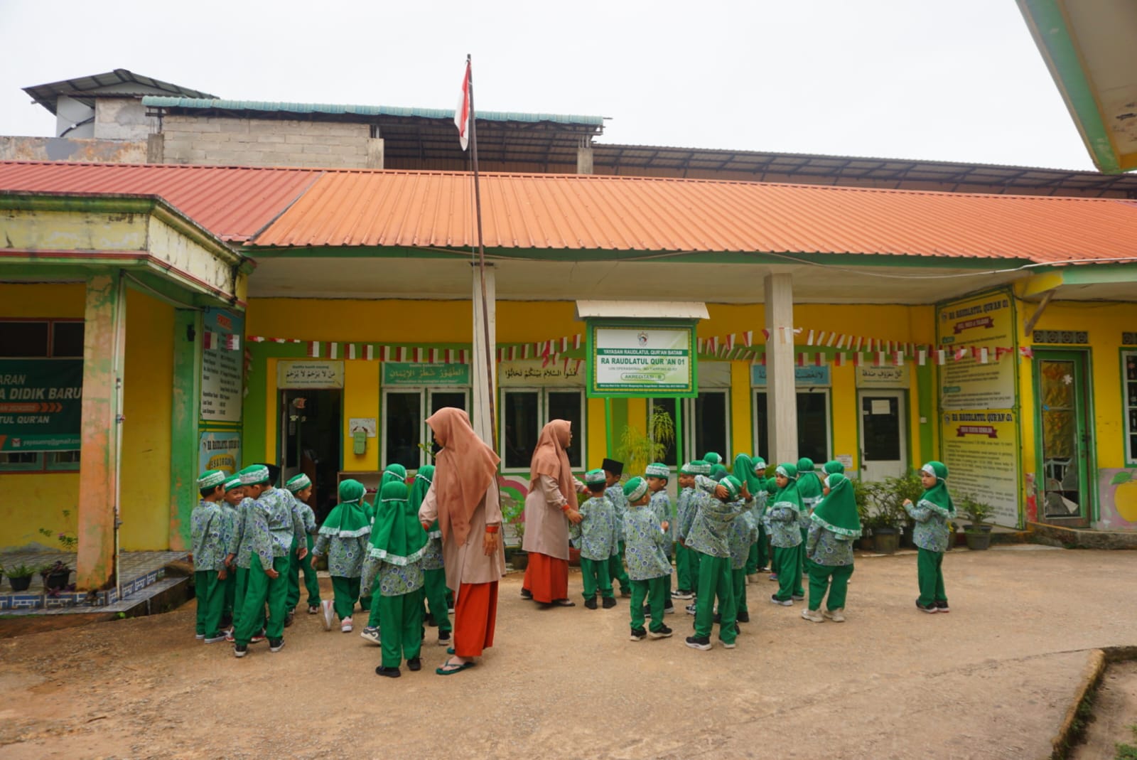 Batam, 17 Oktober 2025 — Suasana kelas di RA Raudlatul Qur’an 01 Batam tampak penuh warna dan keceriaan. Para siswa duduk melingkar di lantai, mengenakan seragam hijau khas madrasah, sibuk menempel potongan-potongan warna-warni menjadi bentuk bunga yang indah.