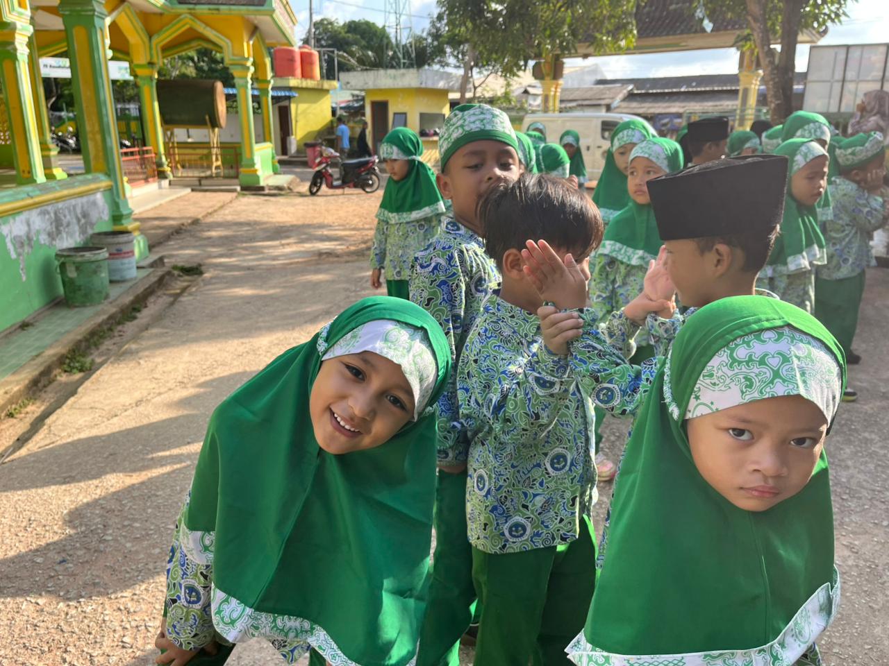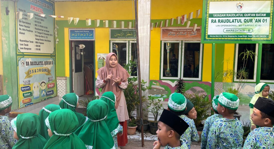 Keceriaan siswa RA Raudlatul Qur’an 01 Batam saat mengikuti pembiasaan pagi bersama guru sebagai awal yang menyenangkan untuk menumbuhkan semangat belajar.