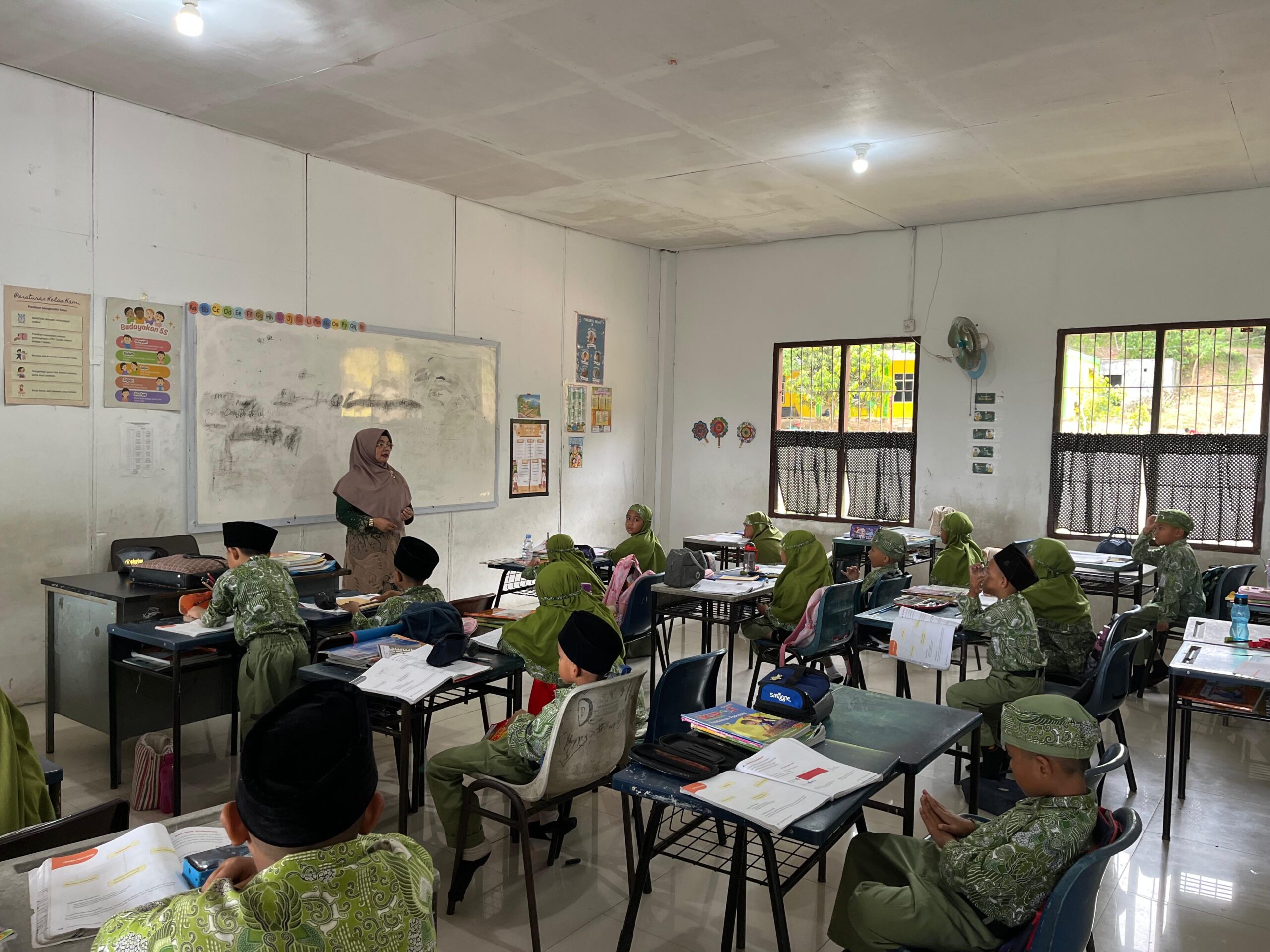 Tamapk siswi MI Raudlatul Qur'an Batam sedang dalam kegiatan pembelajaran di kelas