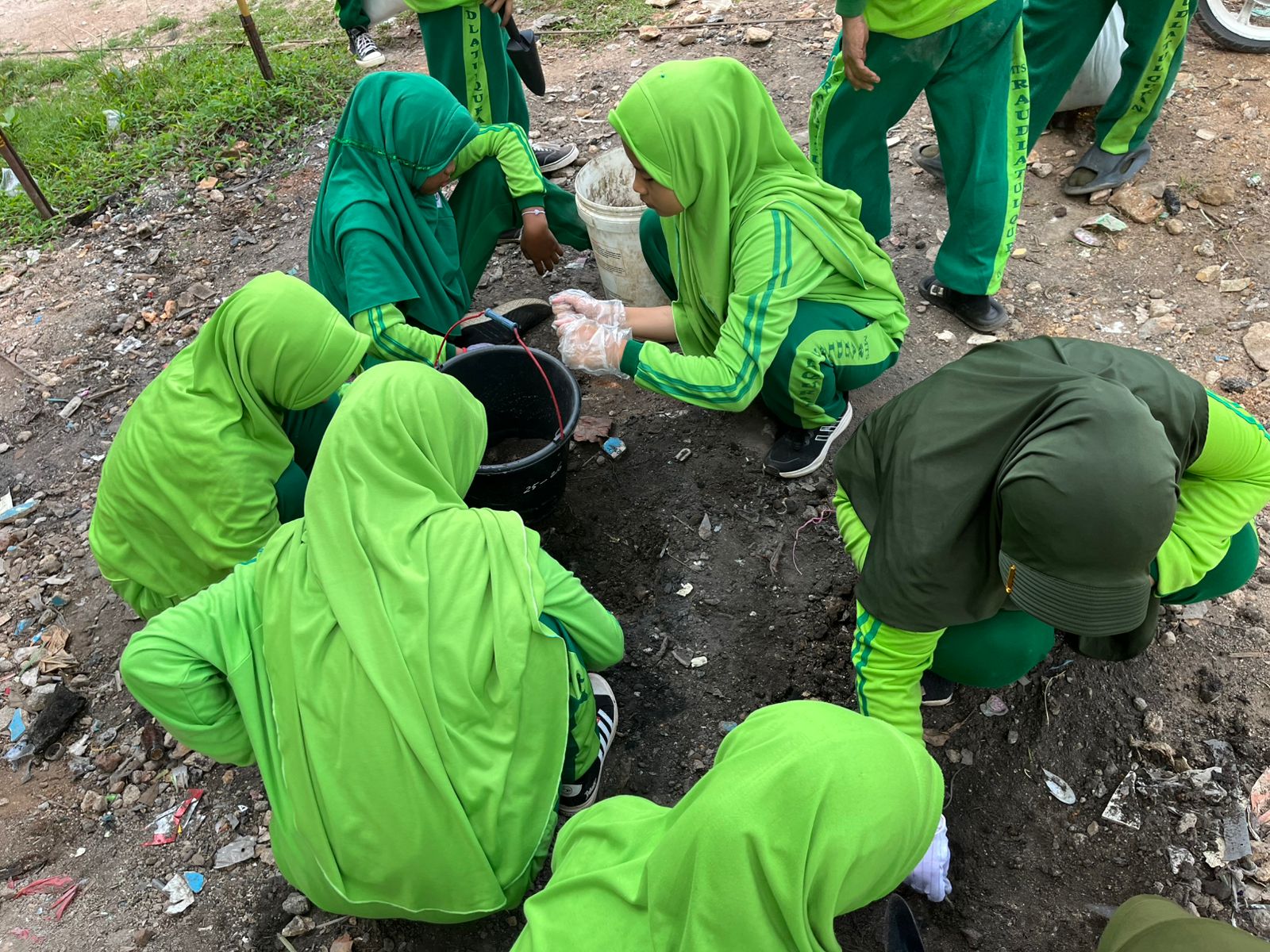 Suasana lapangan yang dikelilingi pepohonan hijau menambah ketenangan dan kekhusyukan para siswa dalam mengikuti kegiatan. Wajah-wajah penuh semangat tampak menyimak dengan serius, mencerminkan tekad kuat untuk menjadi generasi Qur’ani yang cerdas dan berakhlakul karimah.