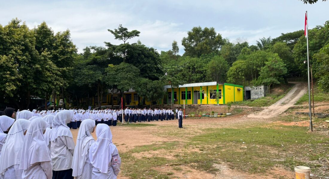 Foto Siswa-siswi MTs Raudlatul Qur’an Batam mengikuti Upacara dengan tertib dan khidmat di halaman madrasah, Senin, 6 Oktober 2025.