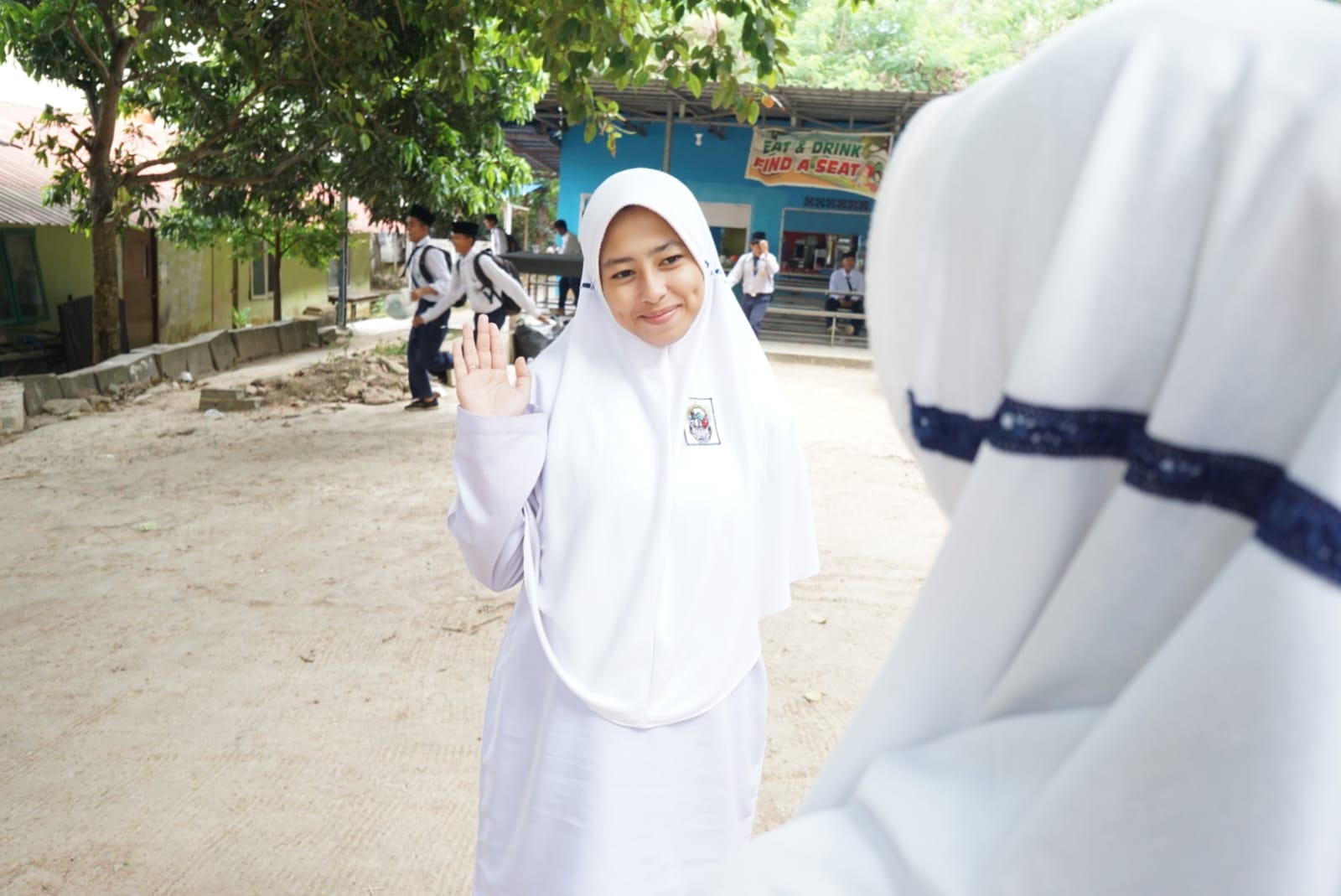 Siswa-siswi putri duduk dengan tertib di area aula, mengikuti rangkaian doa bersama dengan penuh antusias dan kekompakan.