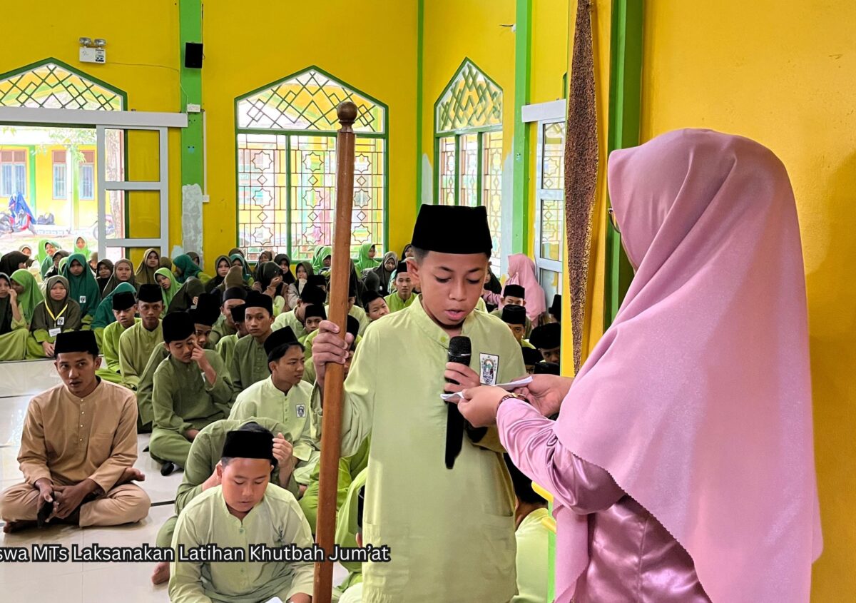 Sebagai bagian dari pembinaan karakter dan penguatan keagamaan, MTs Raudlatul Qur’an Batam mengadakan kegiatan Latihan Khutbah Jumat bagi para siswa. Kegiatan ini bertujuan menumbuhkan rasa percaya diri, melatih kemampuan public speaking islami, serta membentuk generasi muda yang berani berdakwah dengan santun dan berilmu. Dalam latihan tersebut, para siswa diberi kesempatan untuk menyampaikan khutbah secara bergiliran di hadapan guru dan teman-temannya. Mereka mempelajari struktur khutbah yang benar, adab berkhutbah, serta pesan-pesan moral yang sesuai dengan tuntunan Al-Qur’an dan sunnah Rasulullah SAW. Kegiatan ini juga menjadi ajang bagi siswa untuk mengasah kemampuan berpikir kritis, menyusun materi dakwah yang relevan dengan kehidupan sehari-hari, serta melatih ketenangan dan keikhlasan dalam menyampaikan pesan kebaikan.