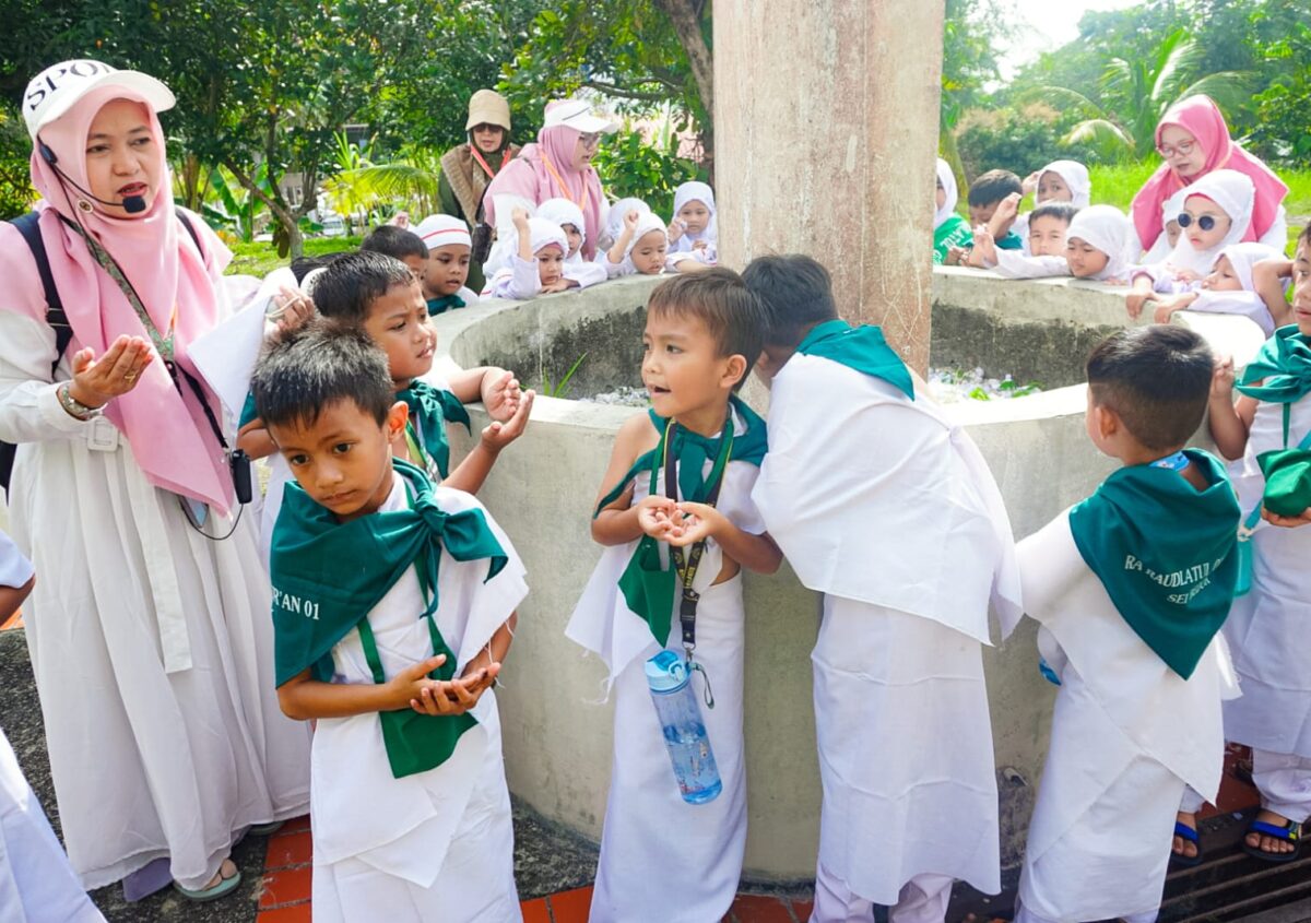 Kegiatan Manasik Haji menjadi salah satu momen berharga bagi siswa-siswi RA Raudlatul Qur’an Sagulung Batam. Dengan penuh semangat dan antusias, anak-anak mengikuti setiap tahapan pelaksanaan manasik, mulai dari tawaf mengelilingi Ka’bah, sa’i antara Bukit Shafa dan Marwah, hingga melempar jumrah yang dikemas dengan cara sederhana dan menyenangkan. Melalui kegiatan ini, para siswa diajarkan untuk mengenal dan memahami rukun serta tata cara ibadah haji sejak dini. Selain menjadi bagian dari pembelajaran keagamaan, kegiatan manasik haji juga bertujuan menumbuhkan rasa cinta terhadap ibadah dan mengenalkan nilai-nilai ketaatan kepada Allah SWT.