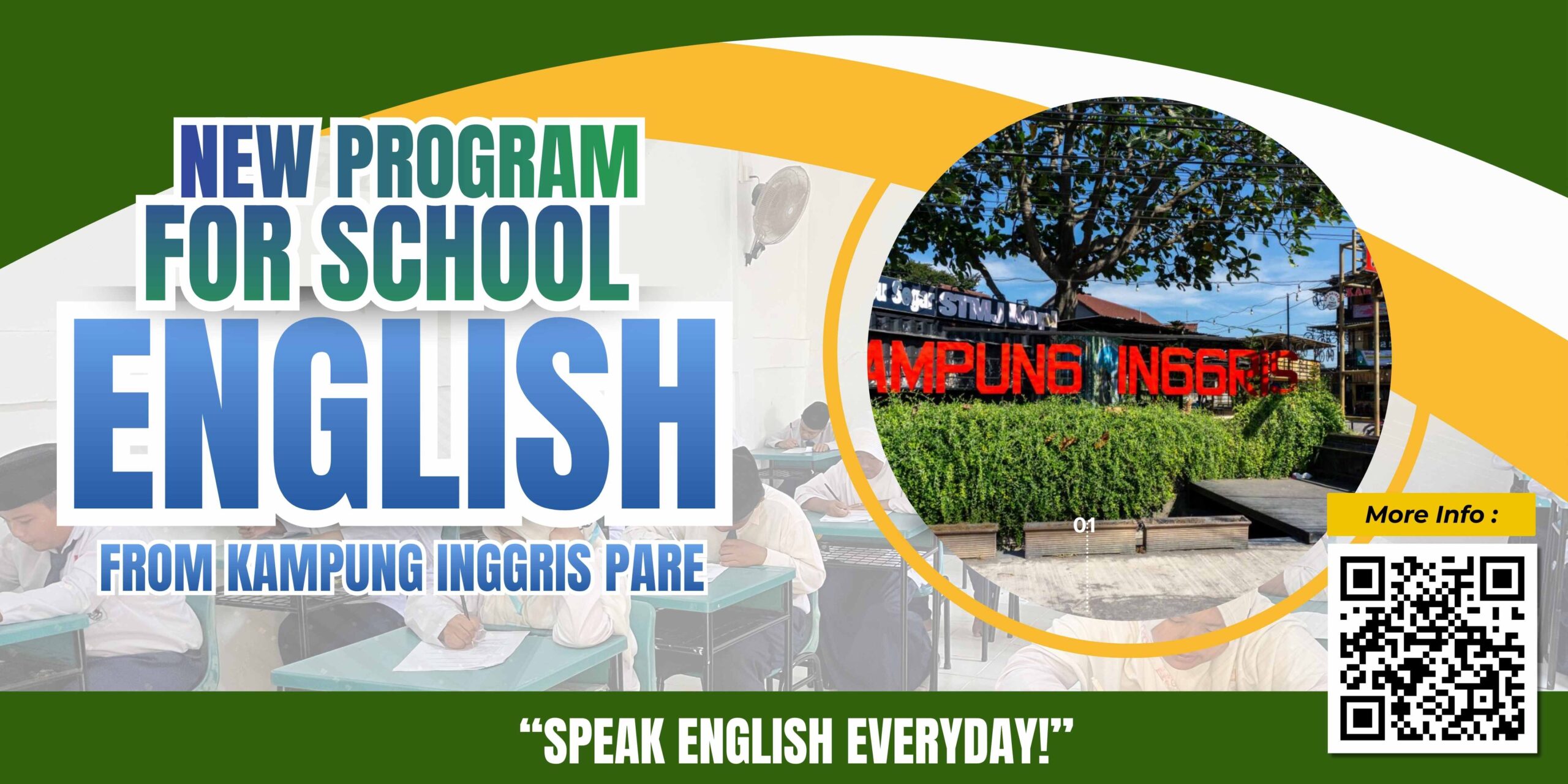 Program English For School dilaksanakan bekerja sama dengan tutor profesional dari Kampung Inggris Pare, salah satu pusat pembelajaran Bahasa Inggris terbesar dan paling terpercaya di Indonesia, dengan metode yang komunikatif dan aplikatif.