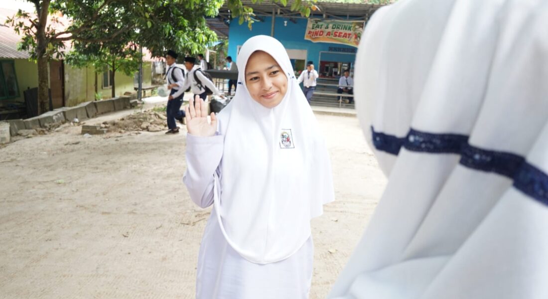 Seorang siswi MTs Raudlatul Qur’an Batam menunjukkan sikap ramah dan santun di lingkungan sekolah, mencerminkan pembiasaan akhlakul karimah serta suasana pendidikan islami yang menjadi ciri khas MTs Raudlatul Qur’an Batam.MTs Raudlatul Qur’an Batam hadir sebagai lembaga pendidikan yang tidak hanya menekankan pencapaian akademik, tetapi juga membentuk karakter dan akhlak peserta didik berdasarkan nilai-nilai Al-Qur’an dan ajaran Islam. Keunikan sistem pendidikan di MTs Raudlatul Qur’an Batam terletak pada perpaduan antara kurikulum formal nasional dengan pembiasaan islami yang diterapkan secara konsisten dalam kehidupan sehari-hari di sekolah.