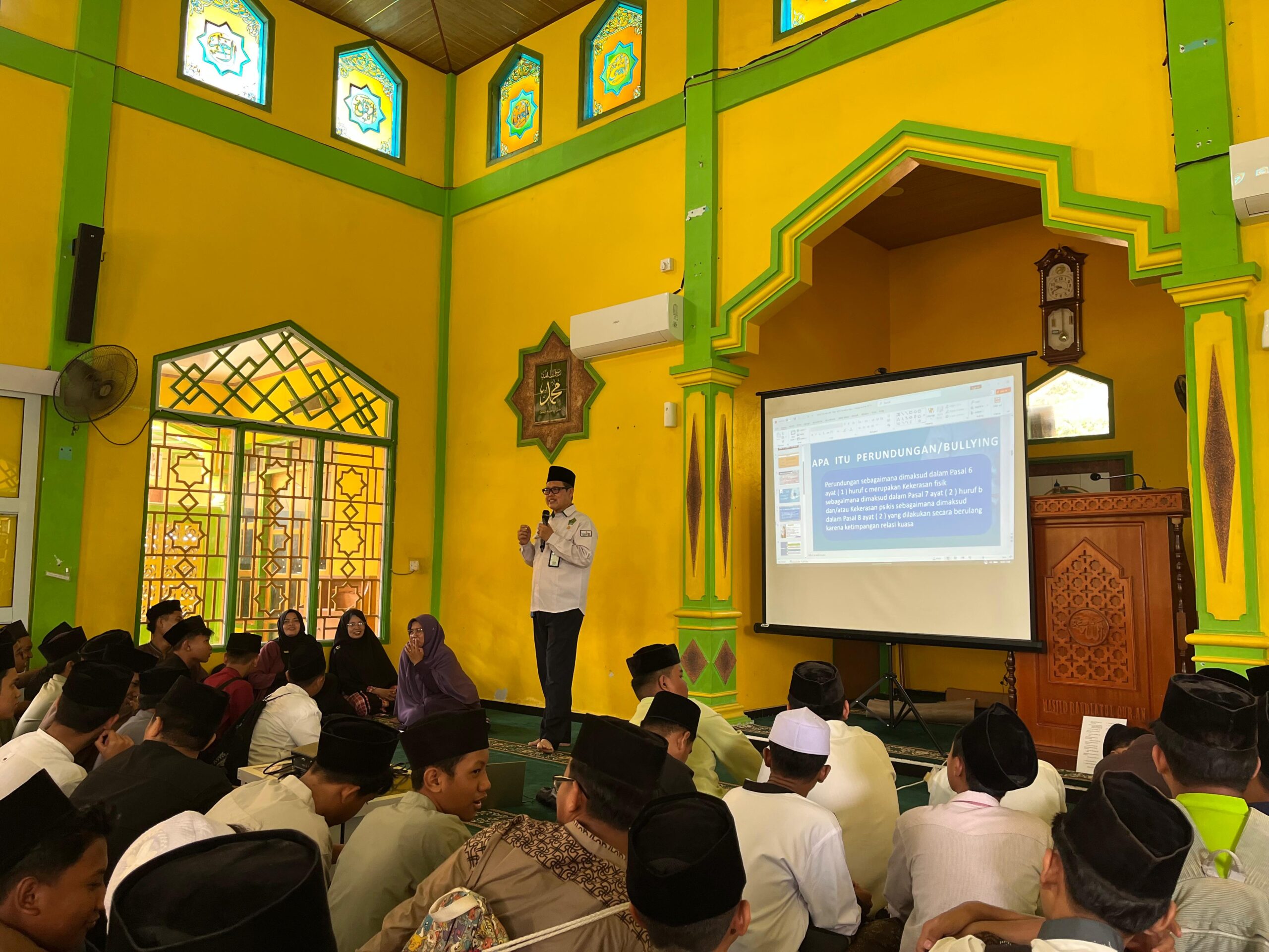 Siswa MTs Raudlatul Qur’an Batam mengikuti sosialisasi tentang kenakalan remaja dengan penuh perhatian sebagai bentuk pembinaan karakter dan penguatan akhlak.Batam – Dalam upaya membentuk generasi yang berakhlak mulia dan berkarakter Islami, MTs Raudlatul Qur’an Batam mengadakan kegiatan edukasi tentang kenakalan remaja yang merujuk pada penjelasan dan arahan dari Kementerian Agama Republik Indonesia.