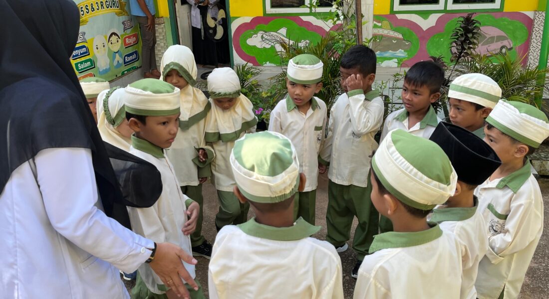 Siswa RA Raudlatul Qur’an 01 Batam sedang mengikuti kegiatan pengecekan kuku yang dilakukan oleh guru, sebagai bentuk pembiasaan hidup bersih dan sehat sejak usia dini.