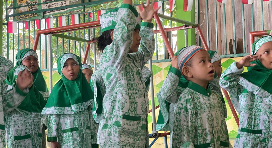 Anak-anak RA Raudlatul Qur’an 2 Sagulung Batam terlihat ceria saat memulai kegiatan belajar pagi. Dengan seragam hijau khas madrasah, mereka belajar sambil bermain dalam suasana penuh kebersamaan.