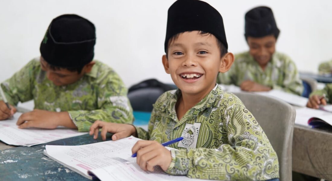 Salah satu siswa MI Raudlatul Qur’an Batam menikmati proses belajar Bahasa Inggris dengan penuh semangat. Pembelajaran yang menyenangkan membuat siswa lebih percaya diri dalam mengembangkan kemampuan speaking & grammar.”MI Raudlatul Qur’an Batam terus berkomitmen menghadirkan pendidikan yang berkualitas dan relevan dengan perkembangan zaman. Salah satu upaya tersebut diwujudkan melalui peluncuran program baru “English for School”, sebagai langkah strategis dalam memperkenalkan Bahasa Inggris sejak dini kepada para peserta didik.