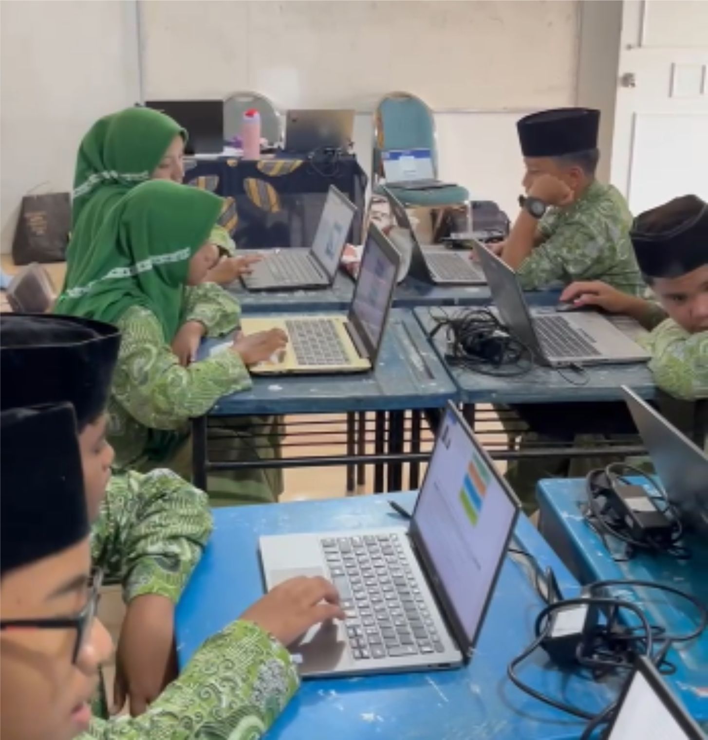 Siswa-siswi kelas VIII MTs Raudlatul Qur’an Batam Asesmen Nasional Berbasis Komputer (ANBK) dengan penuh semangat. Kegiatan ini dilaksanakan sebagai upaya pemerintah dalam memetakan mutu pendidikan serta meningkatkan kualitas pembelajaran di satuan pendidikan.