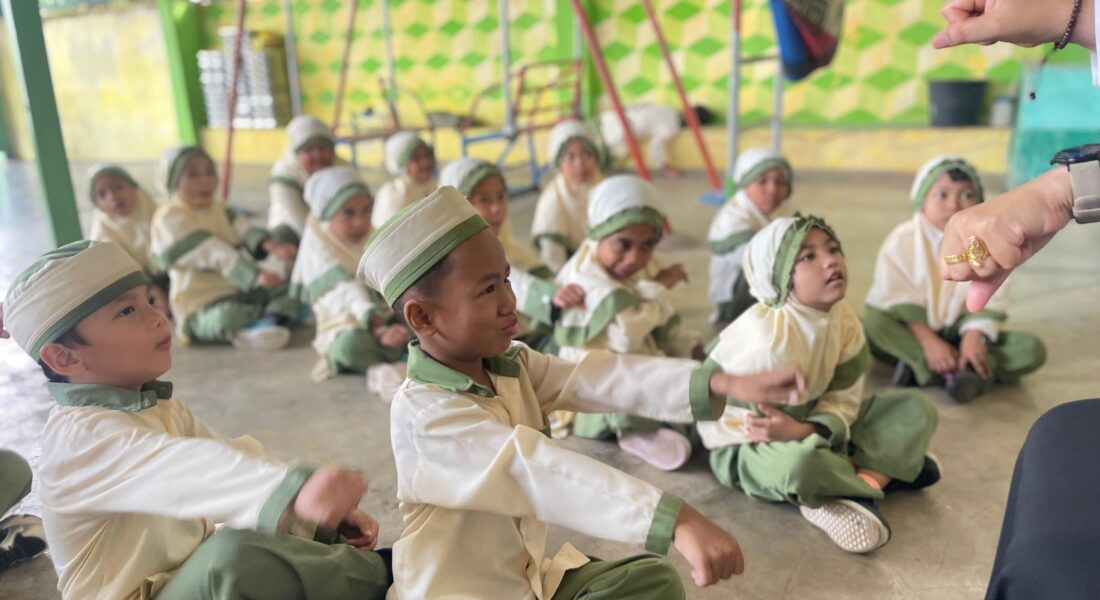 Para siswa RA Raudlatul Qur’an 2 mengikuti arahan ustadzah dengan penuh semangat. Anak-anak tampak aktif melakukan gerakan tangan sebagai bagian dari pembelajaran motorik dan kognitif.Kegiatan pembelajaran di RA Raudlatul Qur’an 2 Sagulung Batam kembali berlangsung penuh keceriaan dan antusiasme. Para peserta didik mengikuti pembelajaran dengan metode gerak dan lagu serta aktivitas motorik yang dirancang untuk menstimulasi perkembangan fisik, kognitif, dan sosial mereka.
