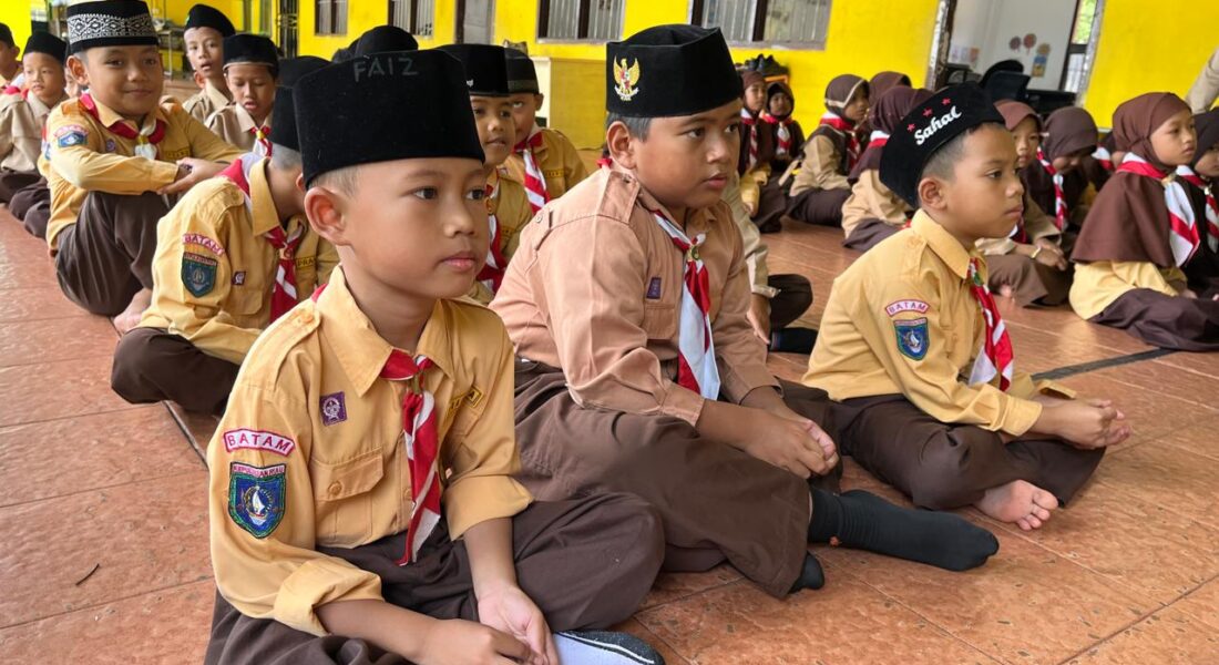 Siswi MI Raudlatul Qur’an Batam mengikuti latihan penulisan Bahasa Inggris dengan penuh konsentrasi. Program English For School hadir untuk membentuk kebiasaan belajar yang aktif, terarah, dan menyenangkan