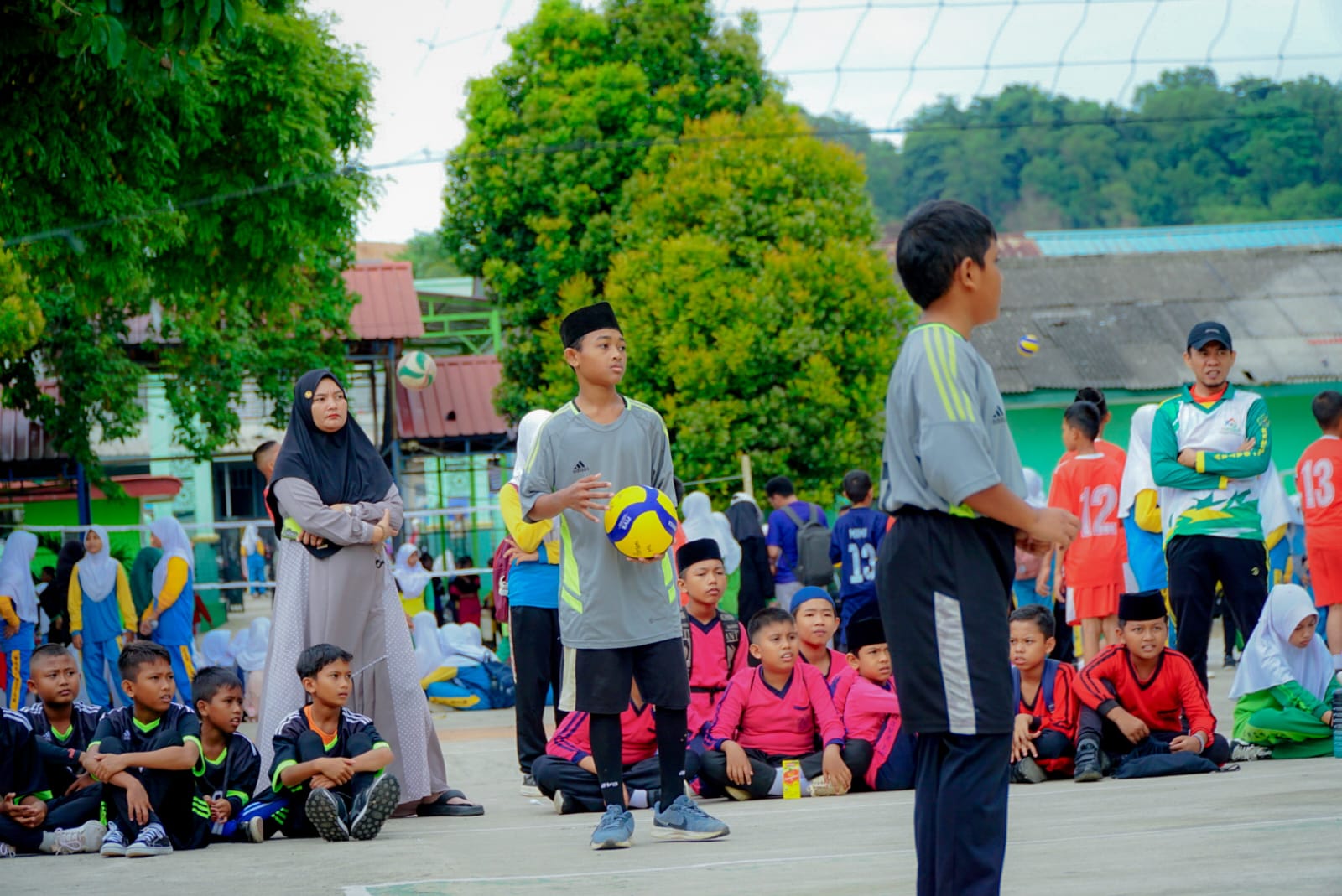 Momen pertandingan tim voli MI Raudlatul Qur’an di ajang Porseni 2025/2026.