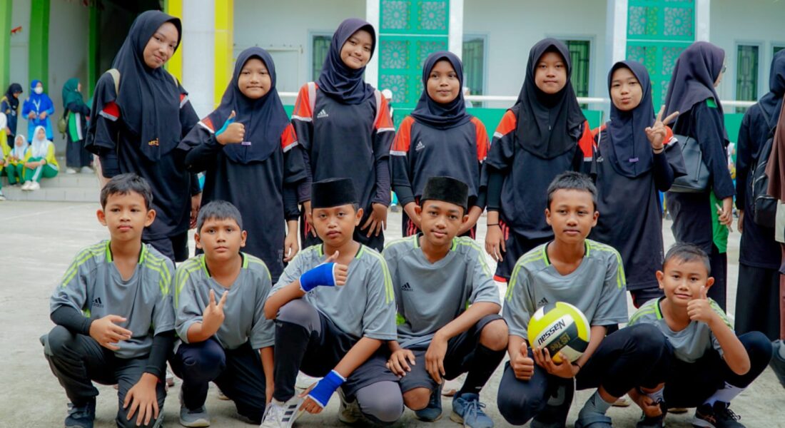 Tim voli putra dan putri berfoto bersama dengan semangat kebersamaan.Semangat sportivitas dan kebersamaan tampak jelas dari tim voli MI Raudlatul Qur’an Batam yang ikut berpartisipasi dalam ajang Pekan Olahraga dan Seni Madrasah (Porseni) Tahun Pelajaran 2025/2026.