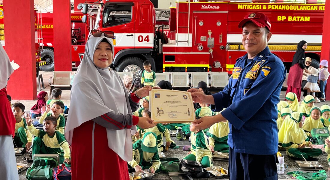 Sebagai bentuk apresiasi dan kerja sama, pihak RA Raudlatul Qur’an 01 Batam juga menyerahkan piagam penghargaan kepada petugas pemadam kebakaran BP Batam yang telah memberikan edukasi dan pengalaman berharga bagi para siswa. Penyerahan piagam dilakukan secara simbolis oleh perwakilan sekolah kepada petugas di lokasi kegiatan.
