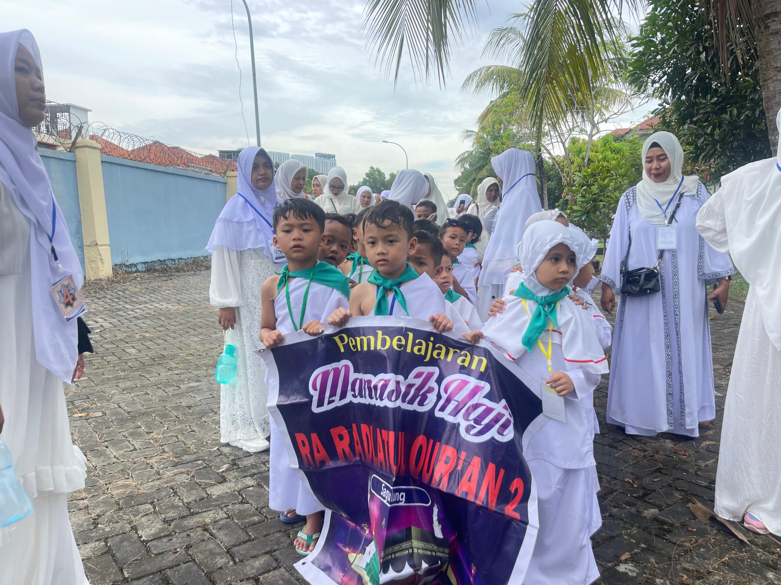 Batam, 21 Oktober 2025 — Suasana penuh semangat dan kekhusyukan terlihat di area Asrama Haji Batam saat anak-anak RA Raudlatul Qur’an 2 Sagulung mengikuti kegiatan Pembelajaran Manasik Haji. Kegiatan ini menjadi salah satu bentuk pembelajaran praktik keagamaan yang dirancang untuk menanamkan nilai-nilai ibadah sejak usia dini.