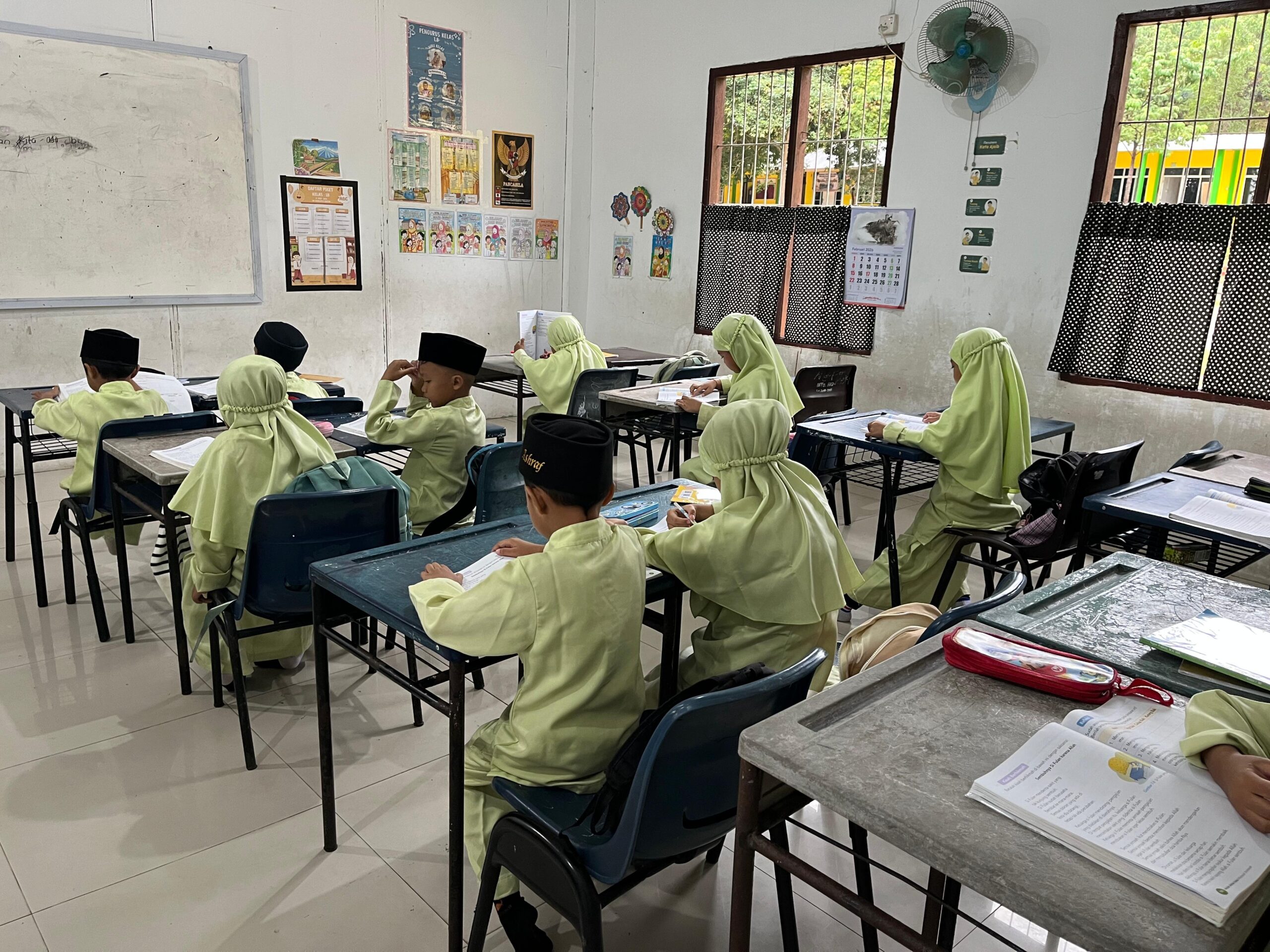 Suasana pembelajaran di kelas MI Raudlatul Qur’an pada bulan Ramadhan, siswa mengikuti pelajaran dengan tertib dan penuh konsentrasi.Bulan suci Ramadhan menjadi momentum istimewa bagi keluarga besar MI Raudlatul Qur’an untuk meningkatkan kualitas ibadah sekaligus semangat dalam menuntut ilmu. Meskipun sedang menjalankan ibadah puasa, para siswa tetap menunjukkan antusiasme tinggi dalam mengikuti kegiatan pembelajaran di kelas.