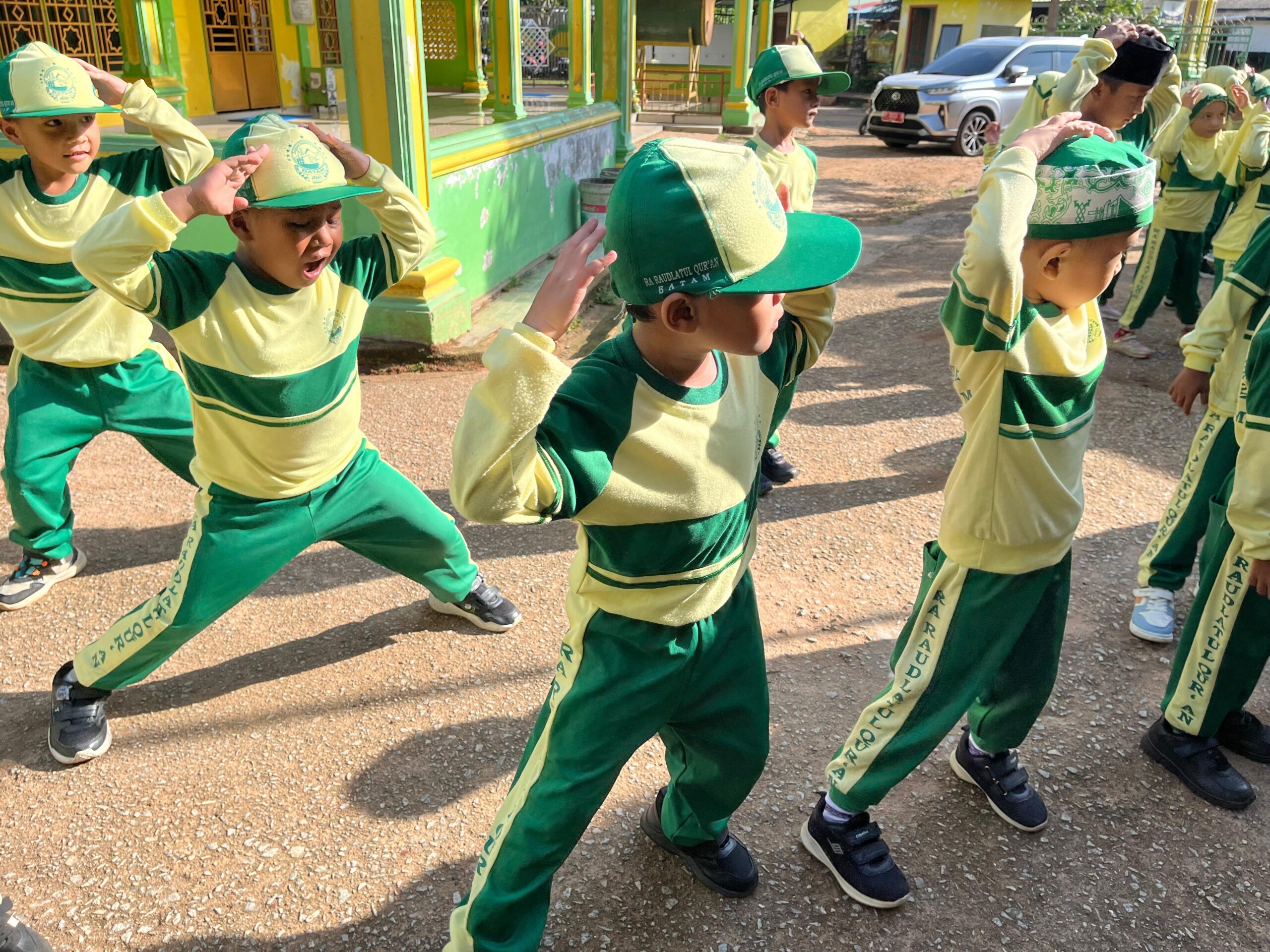 Suasana senam pagi di RA Raudlatul Qur’an 01 Batam yang bertujuan untuk menjaga kesehatan dan menumbuhkan kebiasaan hidup sehat sejak dini.