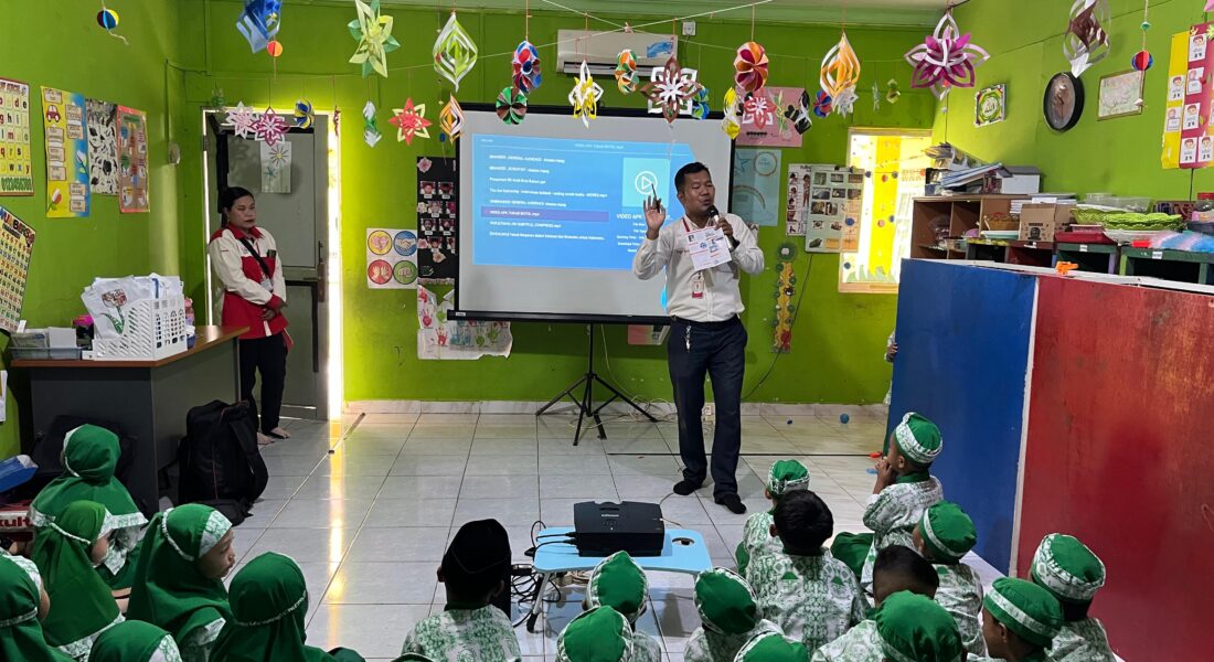 Suasana kegiatan berlangsung ceria dan penuh semangat. Anak-anak tampak aktif merespons pertanyaan dan mengikuti arahan dengan gembira, sehingga pesan kesehatan dapat tersampaikan dengan baik sesuai dengan usia mereka.