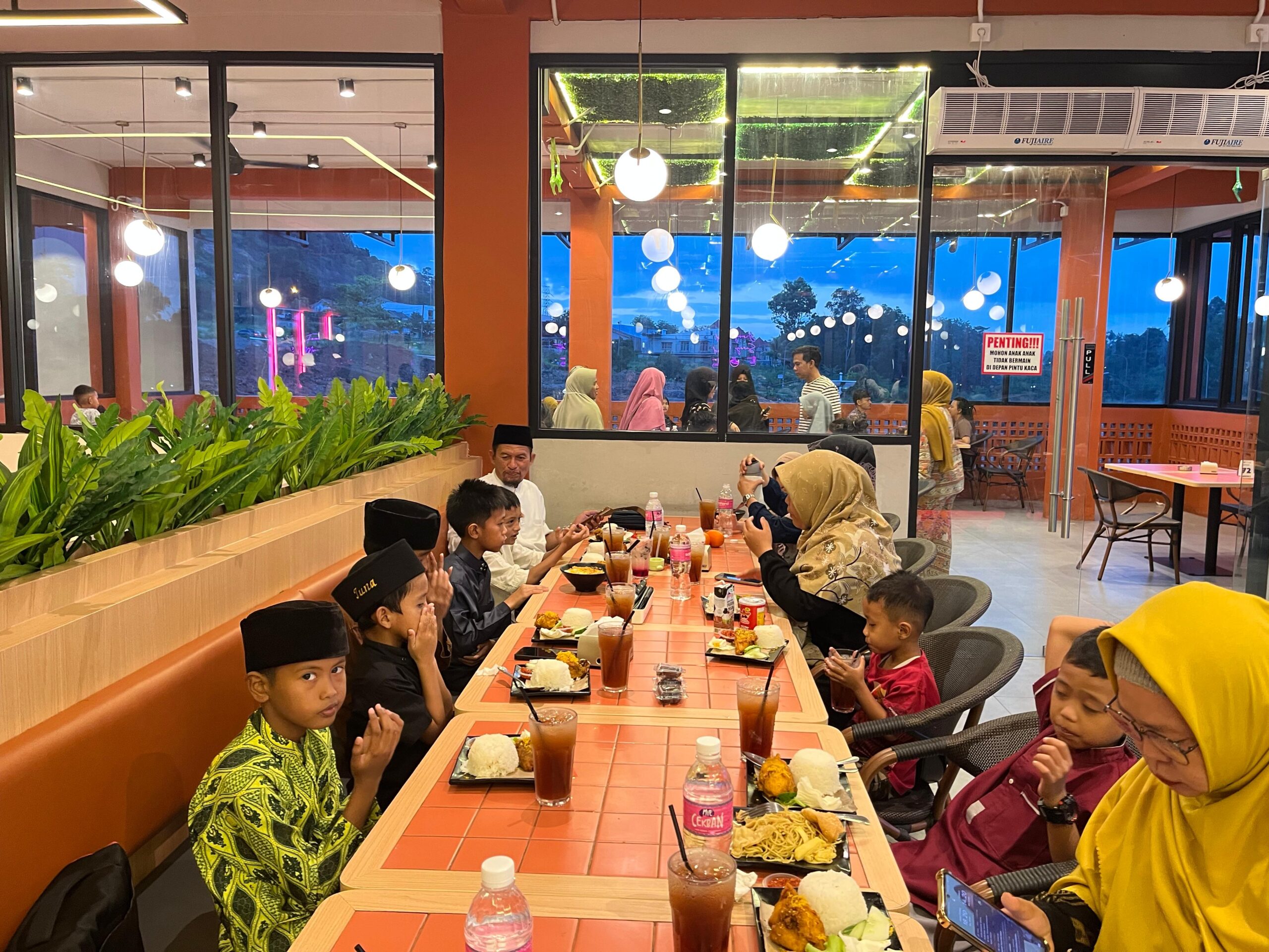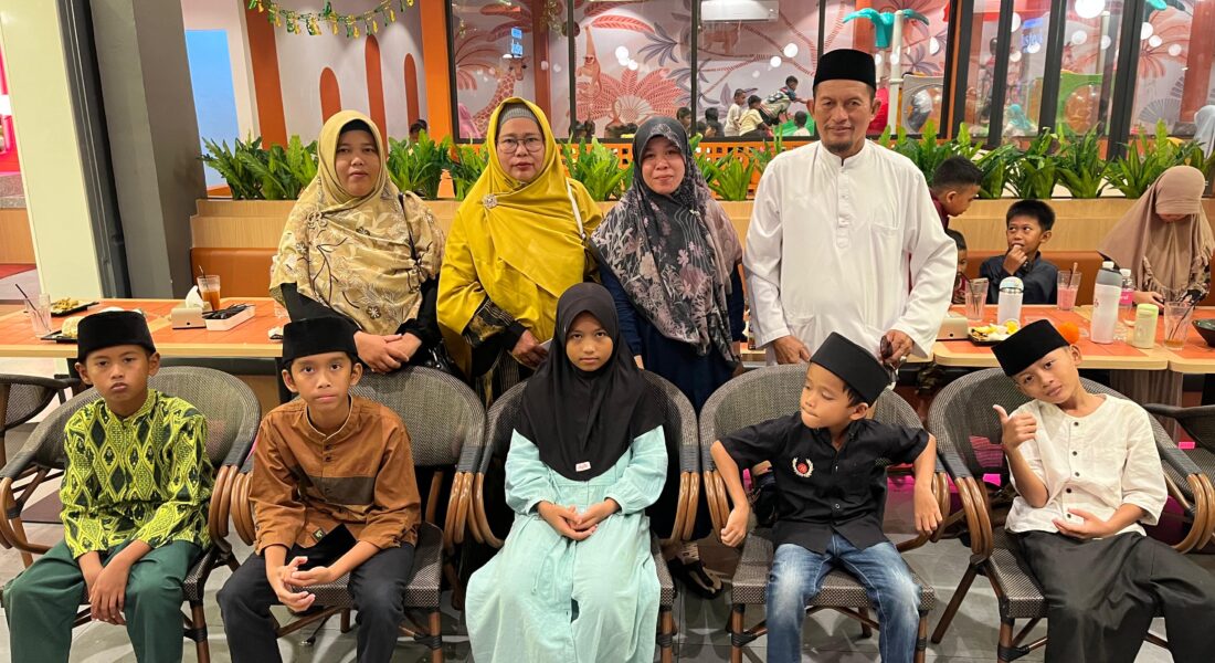 Foto bersama anak-anak MI Raudlatul Qur’an Batam, guru, dan pengurus Yayasan RQ usai kegiatan buka bersama.Batam – Dalam rangka menyemarakkan bulan suci Ramadhan, Yayasan Raudlatul Qur’an Batam kembali menggelar kegiatan buka puasa bersama kali ini dengan anak yatim dari Madrasah btidaiyah (MI) Raudlatul Qur’an Batam. Kegiatan ini berlangsung dengan penuh kehangatan dan kebersamaan di salah satu restoran di Kota Batam.